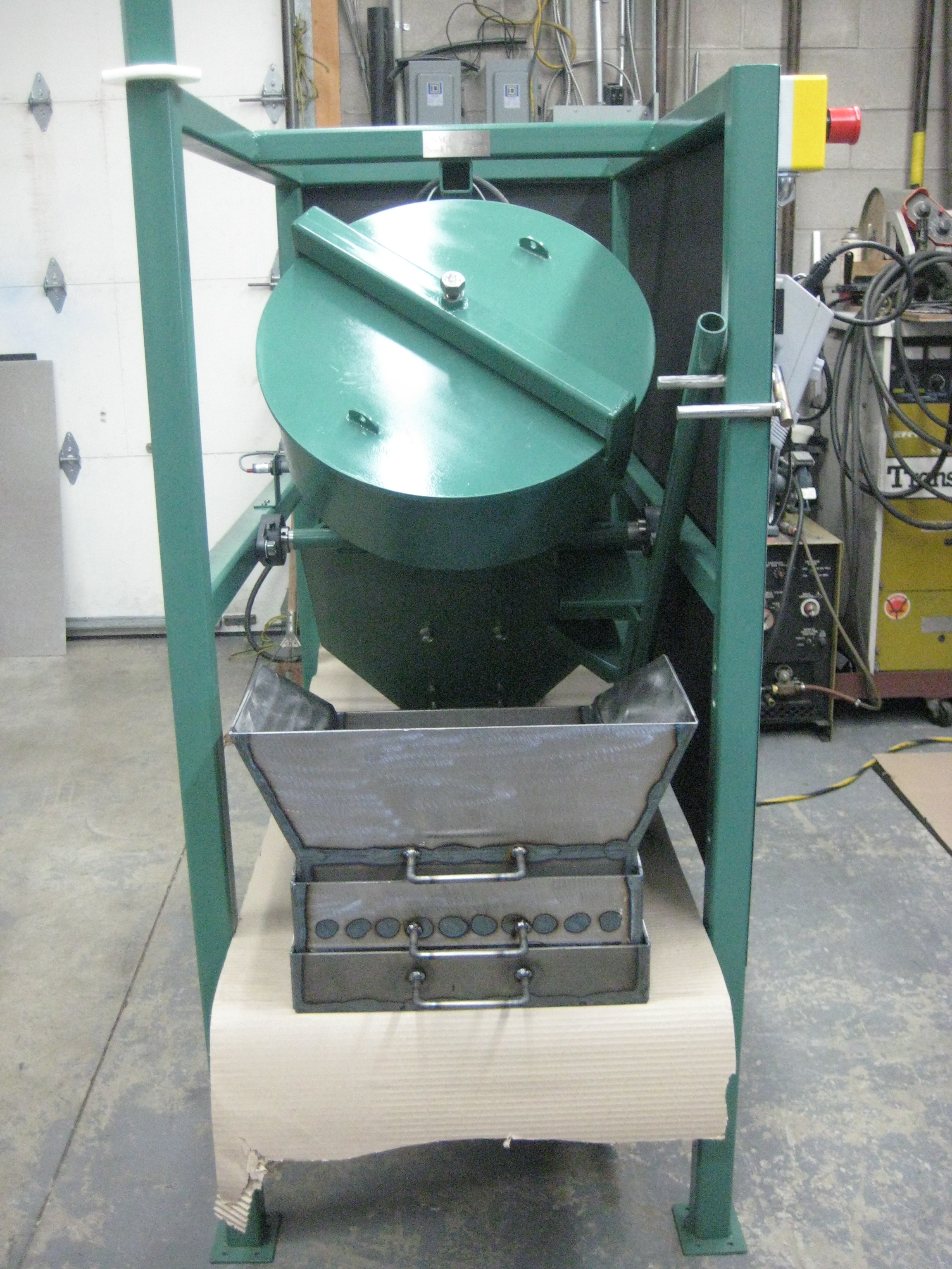 The flagship SAGDesign test is the most accurate grindability test available. The SAGDesign test measures the pinion energy to grind ore from 80% passing 152 mm to 80% passing 1.7 mm (WSDT). The 2nd stage of the test measures the Bond Ball Mill Work Index on SAG ground ore, Sd-BWI. SAGDesign ore feed is prepared from a minimum of 10 kg of split or whole diamond drill core pieces or run of mine ore, by stage crushing the ore in a jaw crusher to 80% passing 19 mm. The crushed ore is then ground in a SAGDesign SAG mill (489 mm inside diameter x 163 mm EGL), seen here, that operates with parameters similar to commercial SAG mills (26% total charge; 11% steel load, 15% ore load; and rotation at 76% of critical speed).